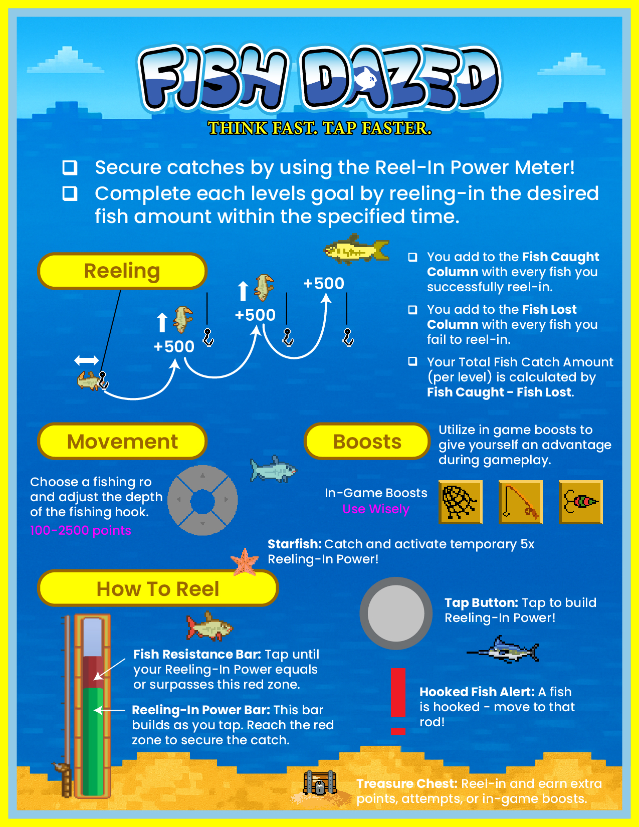 Welcome to Fish Dazed — a fast-paced, arcade-style fishing game where reflexes rule and every tap counts. What starts simple quickly turns into a high-stakes rhythm of speed, timing, and control as the action ramps up with every catch.